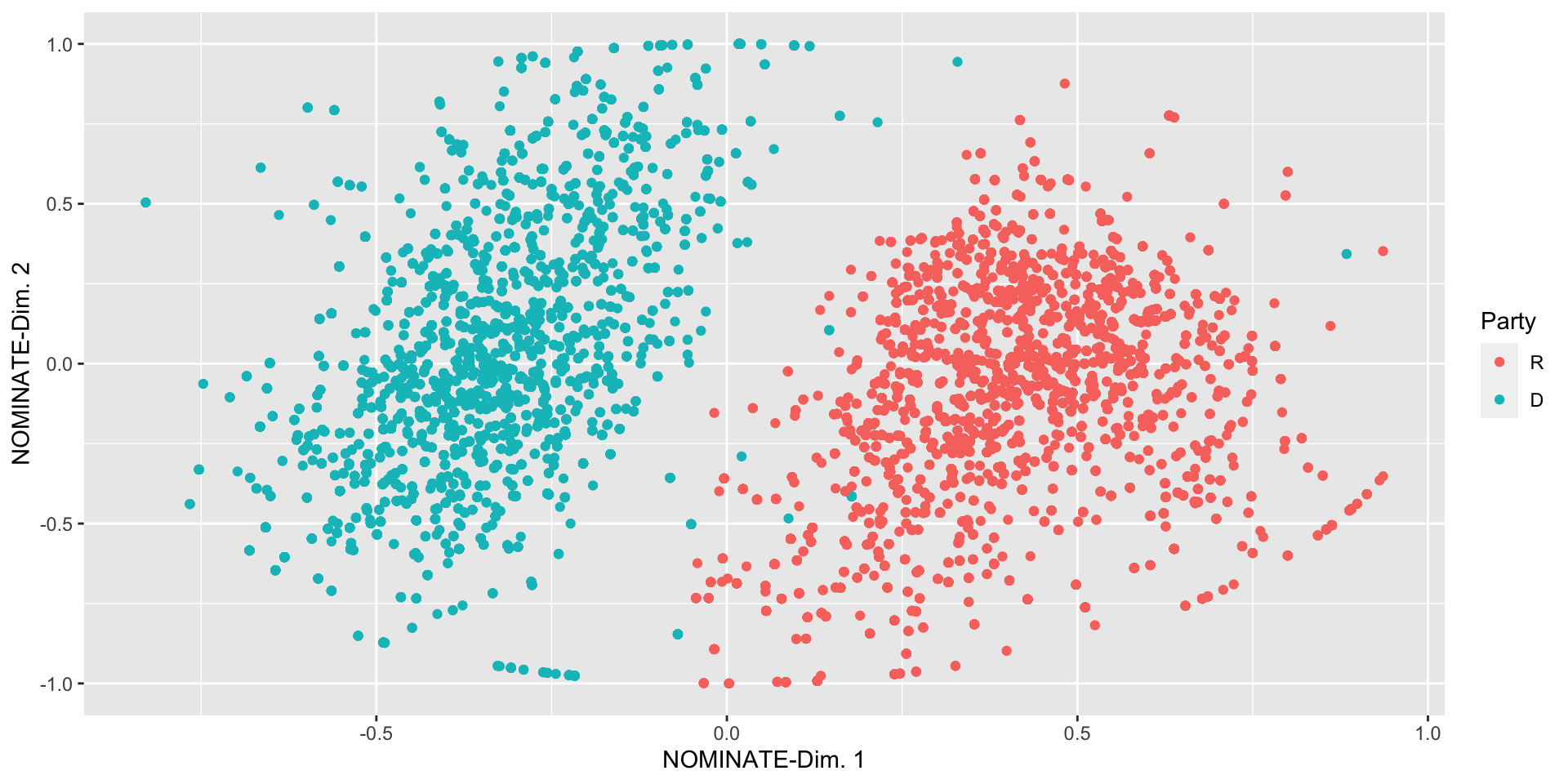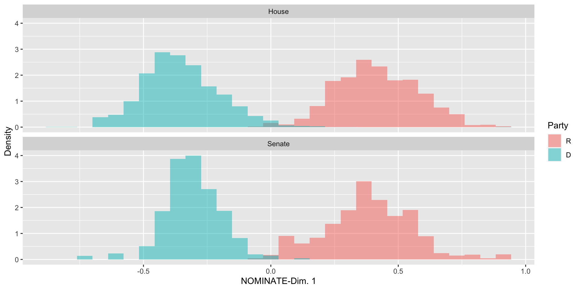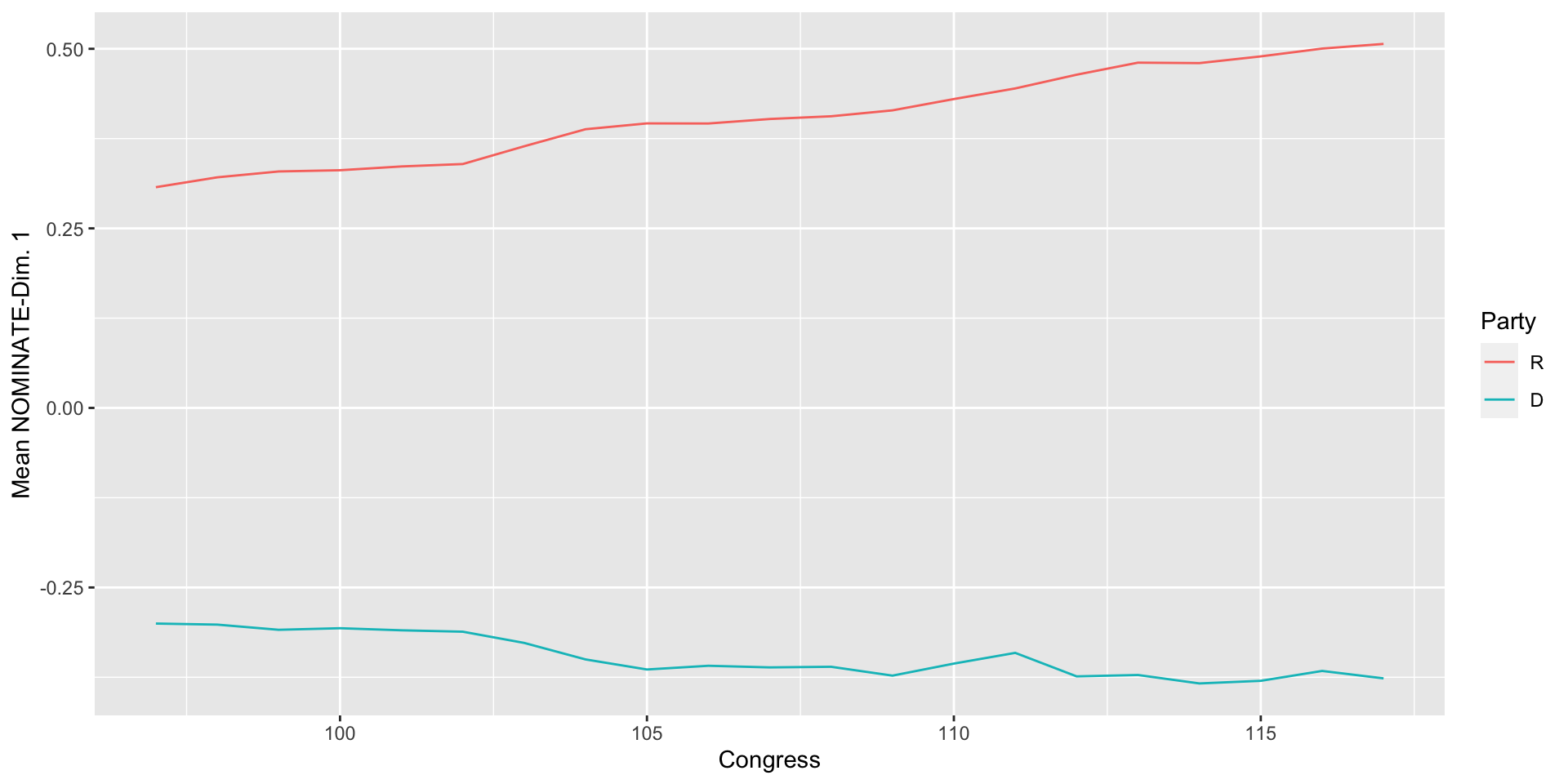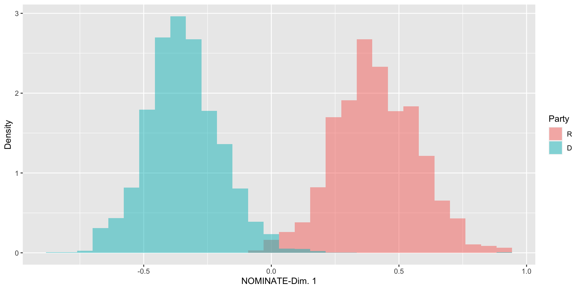 dplyr functionsdata tabDownload Dataparty_code variable, so it reads “D”, “R” instead of “100”, “200”party_code variable, so it reads “D”, “R” instead of “100”, “200”party_code variable, so it reads “D”, “R” instead of “100”, “200”nominate_dim1