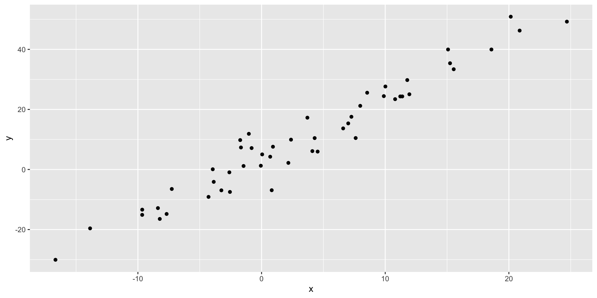 • True equation: \(y = 3 + 2*x + \varepsilon\)