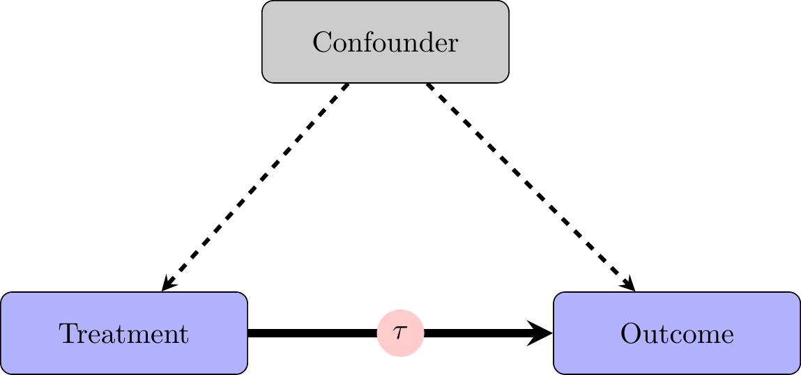 • \(y = 4 + 5*confound + 2*x + var1 + \varepsilon\)