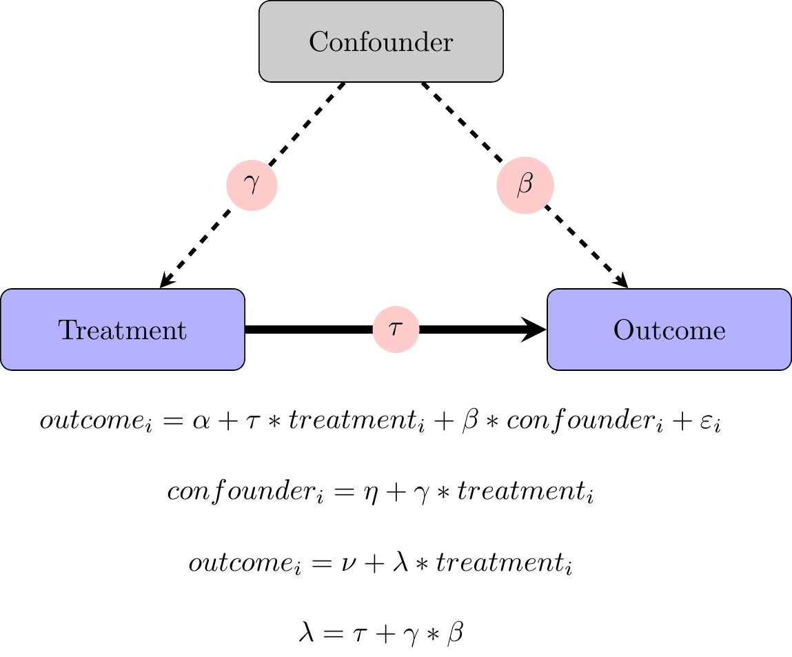 \(y = \alpha + \beta*x + \gamma*confound + \epsilon\)