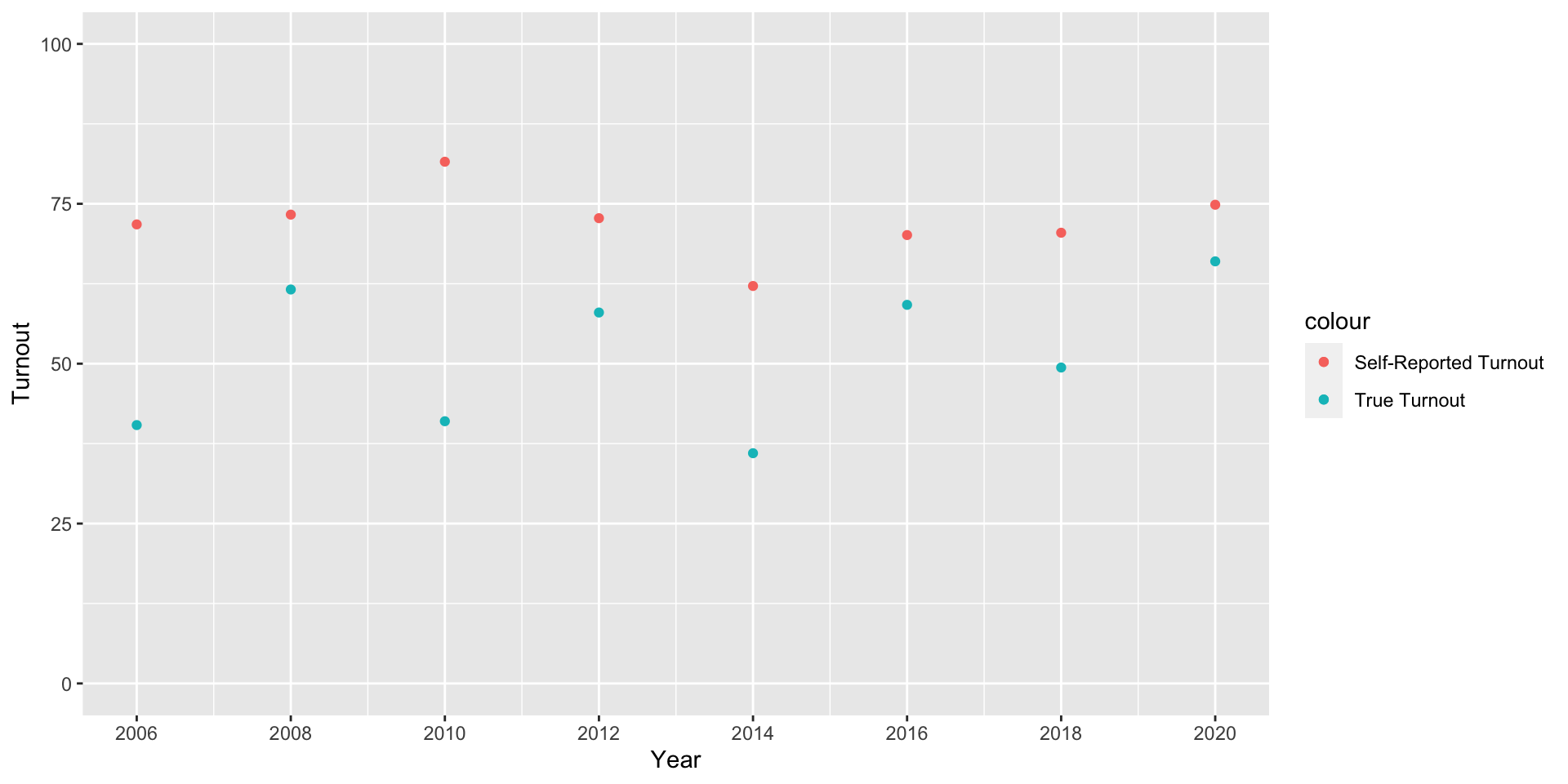 geom_point(aes(color = "Self-Reported Turnout")) +