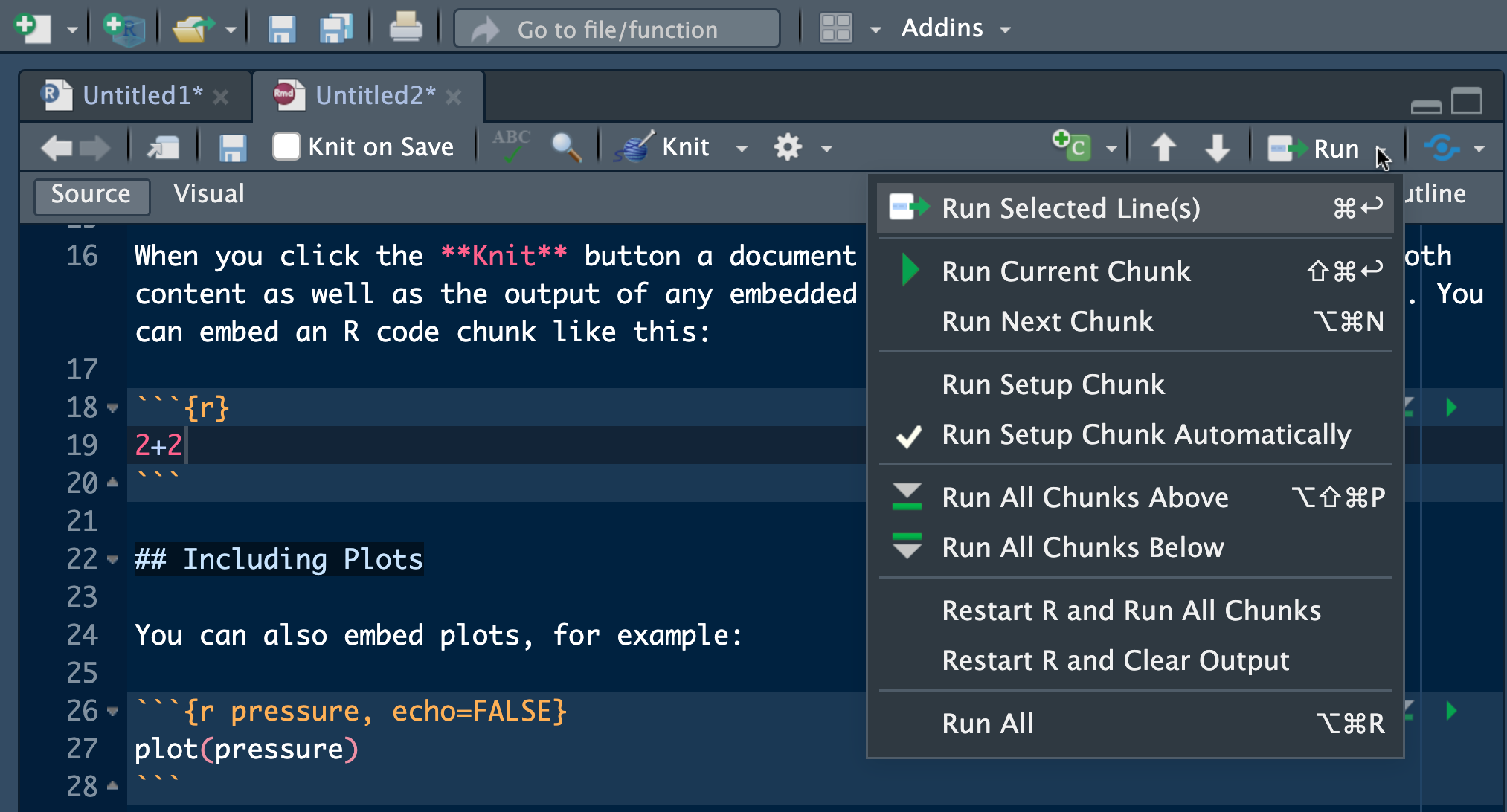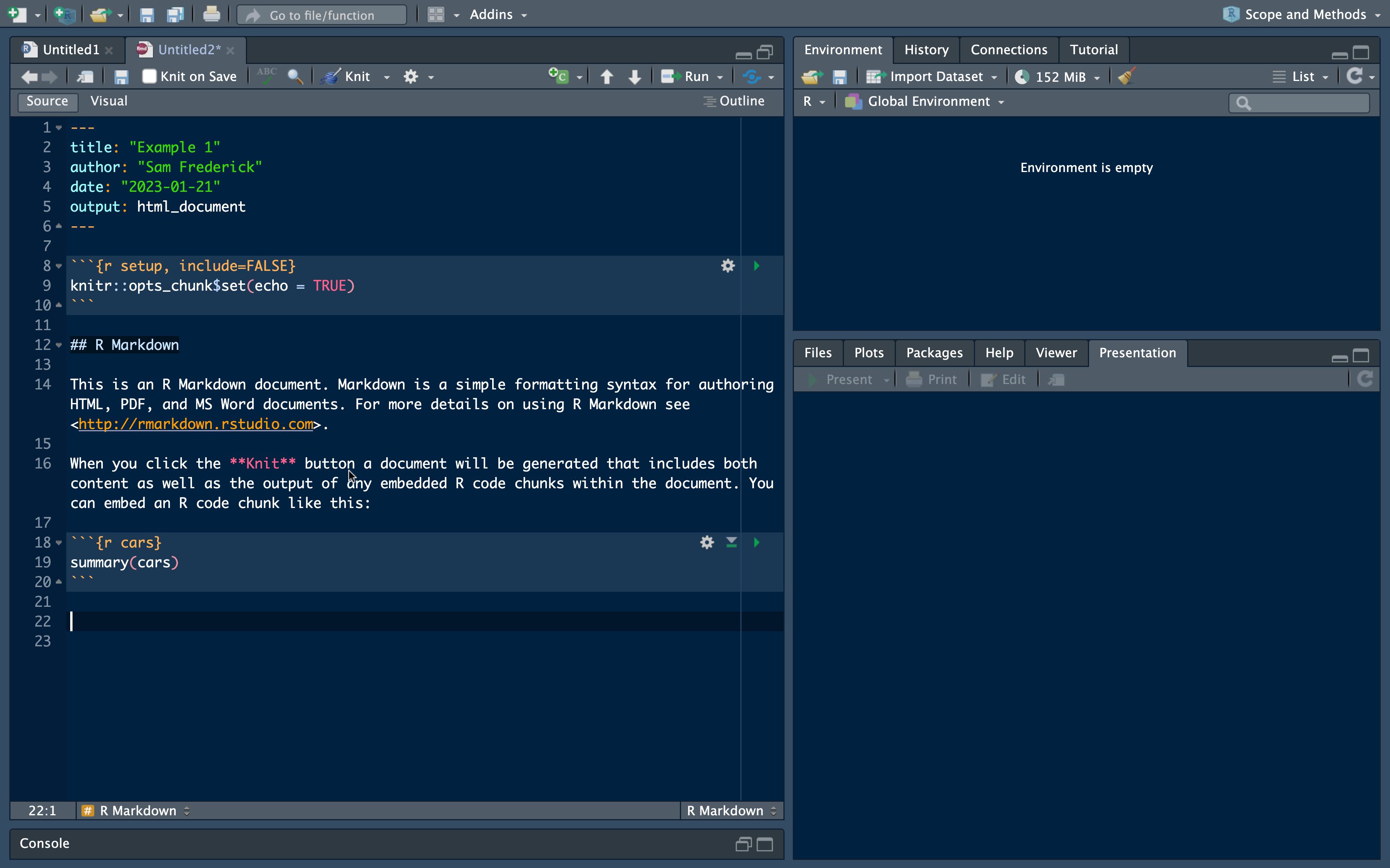 See if you can figure out how to insert a new code chunk (a section that R reads as code)
